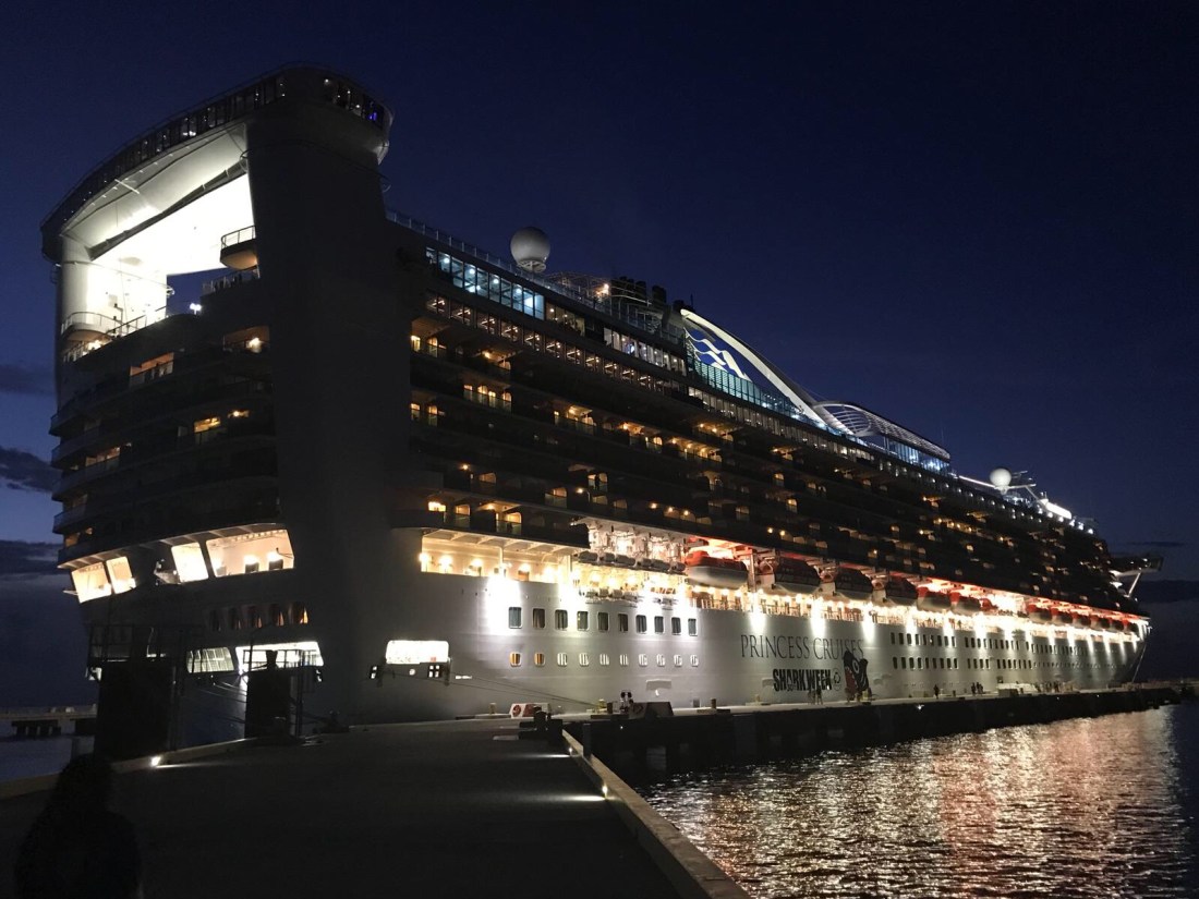 We spent about 45 minutes at the terminal before walking back to the ship. Beautiful Caribbean Princess looked gorgeous with the lights.