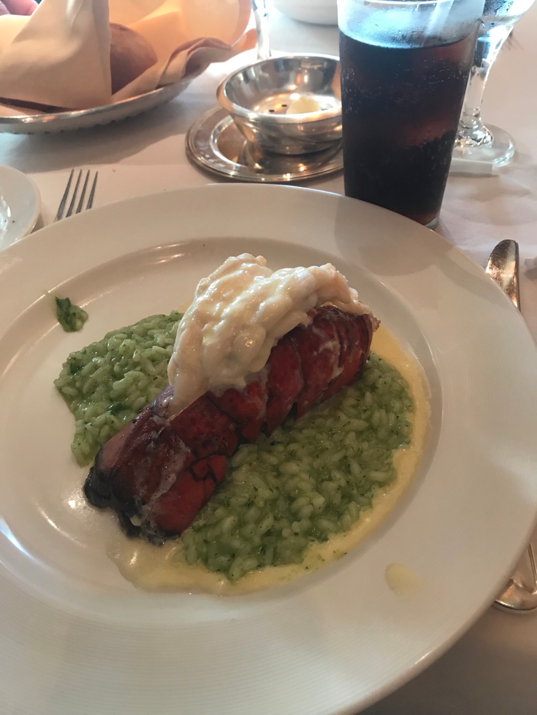 Originally we made a reservation at Steamers.Once we knew they had Surf & Turf for the night, we changed our mind to eat in the dining room instead. However, my filet mignon was too well done instead of medium rare, so I had to switch it. The head waiter Filippo brought a second one to me which was like a medium. A bit disappointing with the main course tonight.