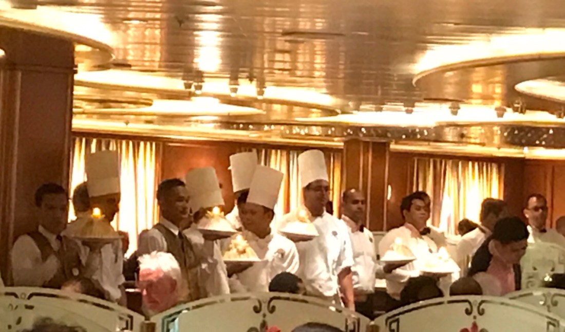 During tonight’s dinner, the waiters did the Baked Alaska Parade.