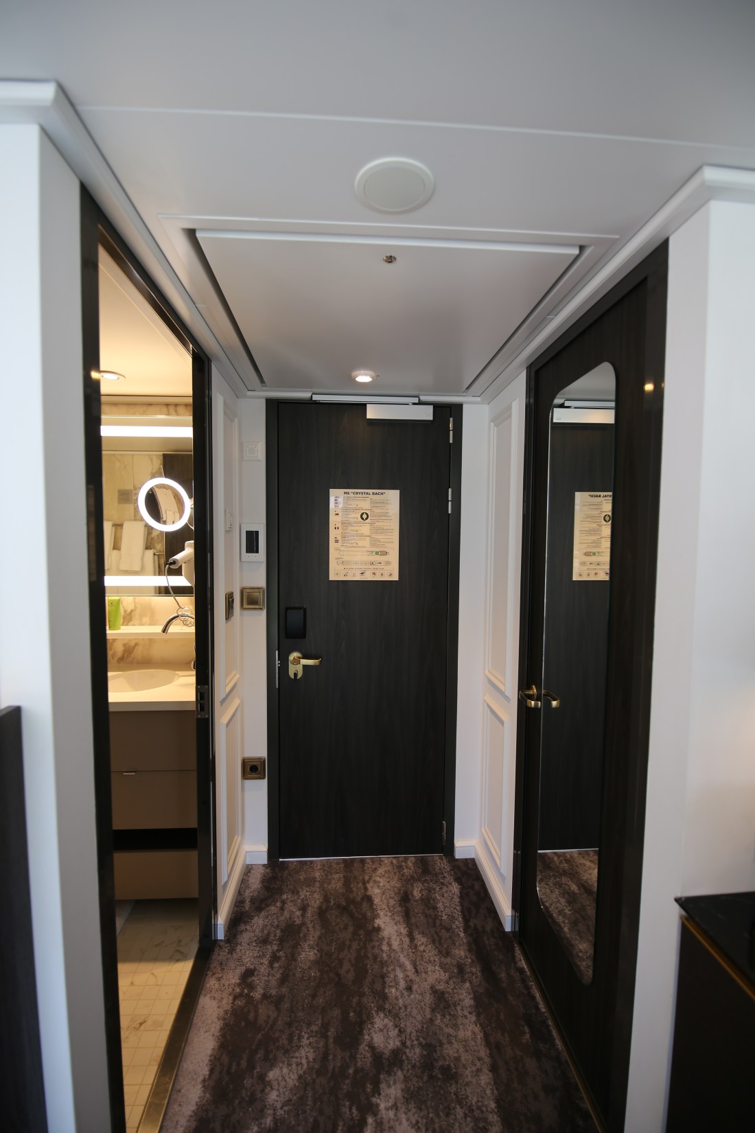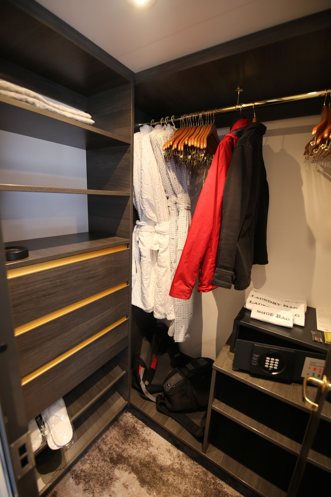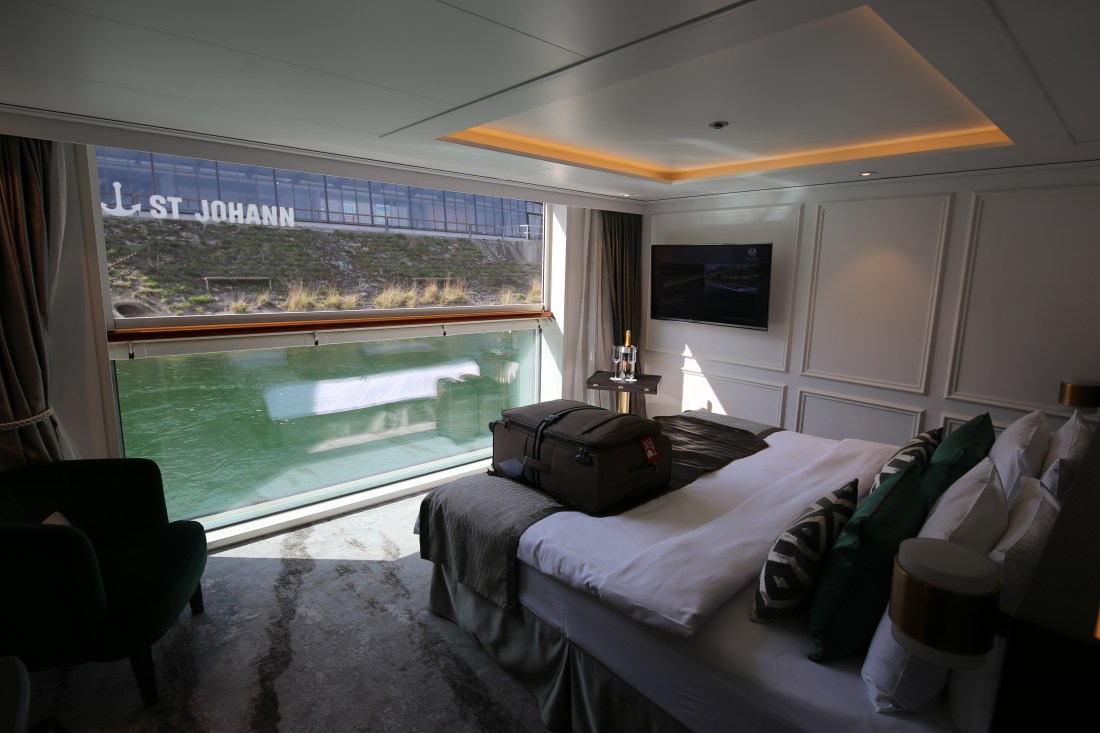 Suite #205 was quite spacious with a King bed, bathroom with double sinks and a walk-in closet. I loved the panoramic window that could be lowered to form a balcony. It’s an extremely clever design. The lowering of the window took 39 seconds and as soon as the glass was touched, the window would stop moving as a safety feature.