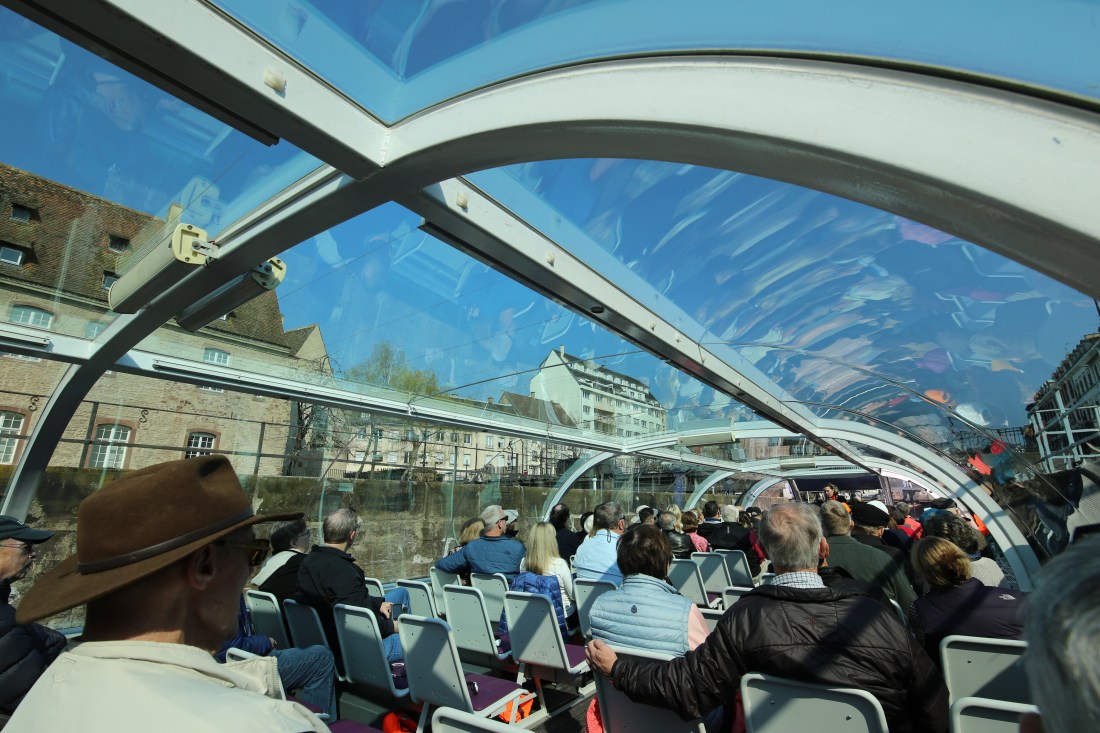 At 9:30 am, we departed for the 4.5 hour complimentary tour: Panoramic Tour of Strasbourg & Canal Boat Cruise. Make sure you sit on the left Of the bus as there was so much more to see on that side going from the dock to the city centre. We passed through the bridge linking the trams between France & Germany, Russian Orthodox Church, Council of Europe, Jewish Synagogue and many more sights. Along the way, we saw many storks in their nests on pruned sycamore trees.
