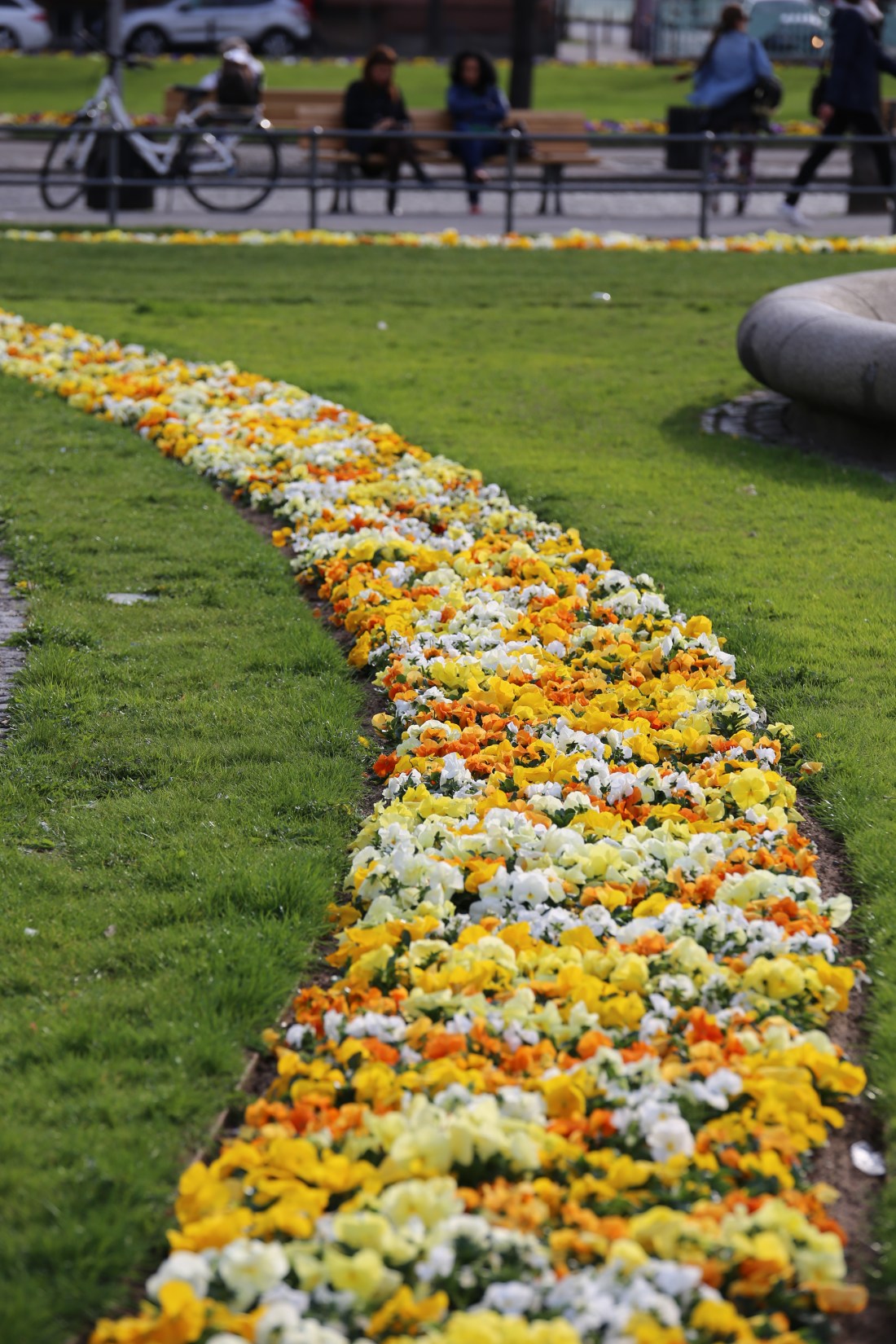 Beautiful flowers were grown around the statue.