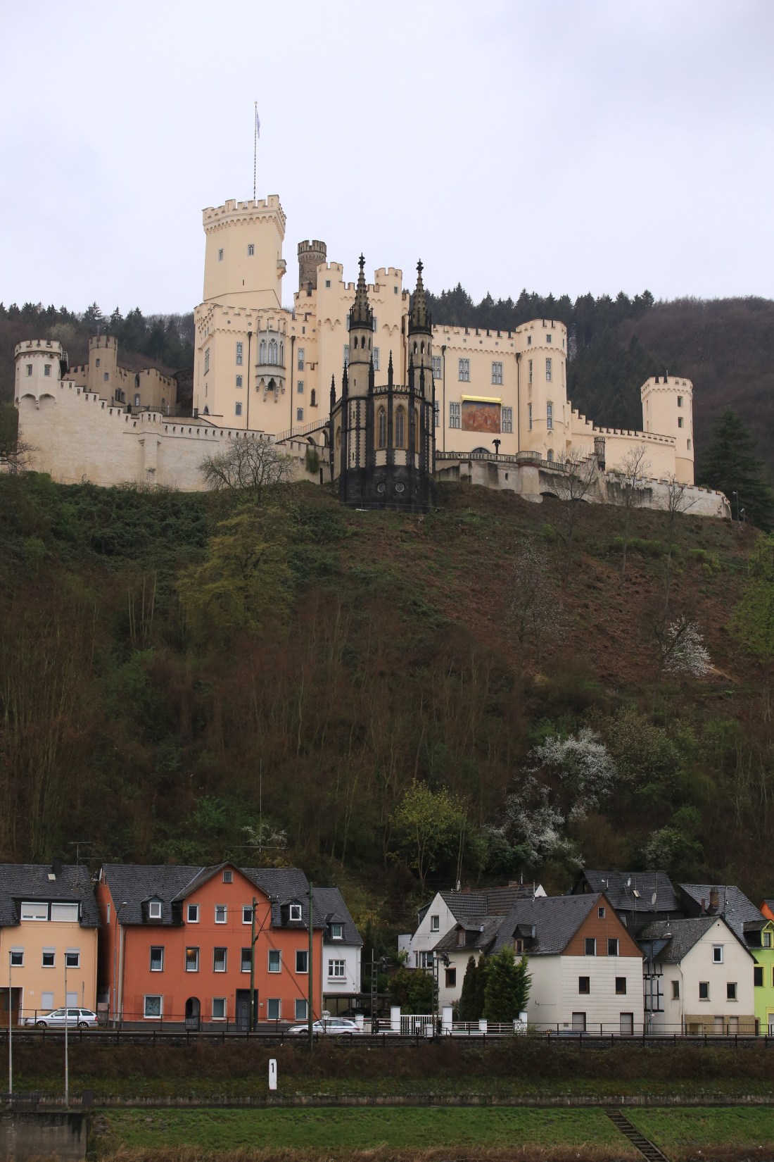 Then we reached Koblenz and saw the off-white yellowish Stolzenfels Castle. It is a former medieval fortress castle turned into a palace, which was ruined in the 13th century. It was rebuilt in the 19th century in the Gothic Revival style by the Prussian Crownprince, Frederick William.