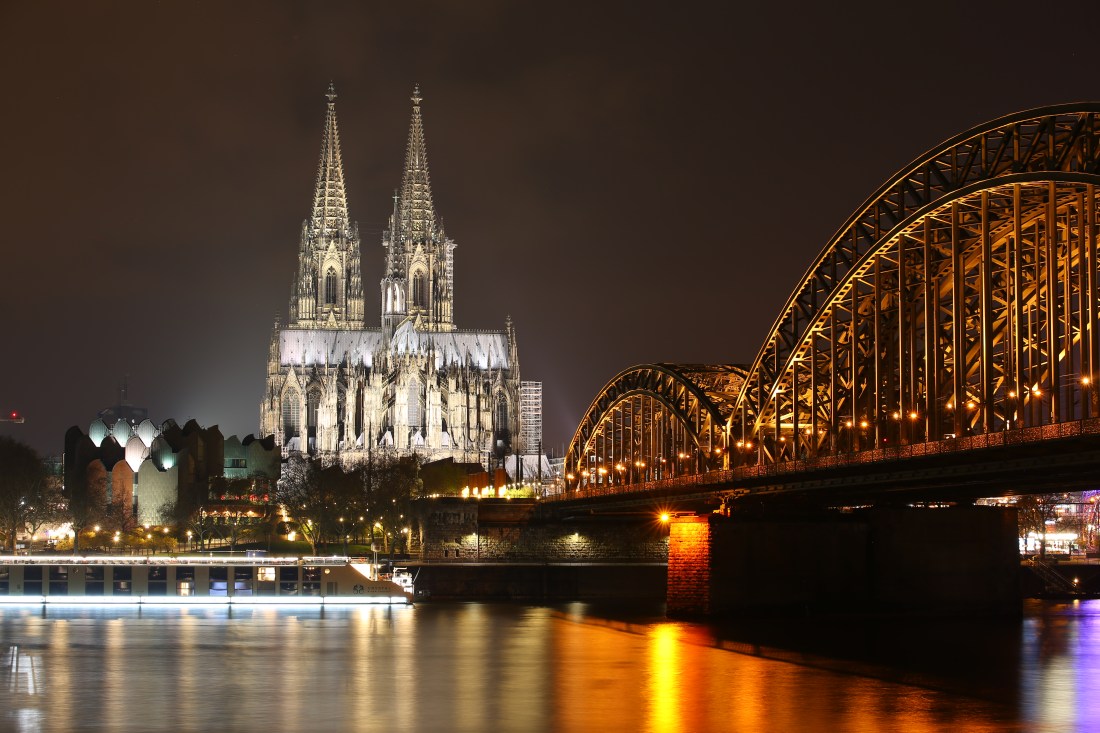 During the 30 minutes we spent there, there were police patrolling the area in his car . Below is a great long exposure taken by my husband showing our boat on the river with the Cathedral in the back and the Deutzer Brucke Bridge on the side.