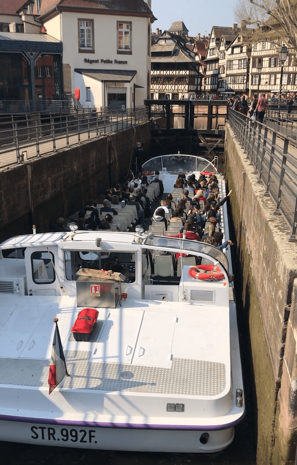 Then we walked further in Petite France to watch the canal boat passing through a narrow lock.