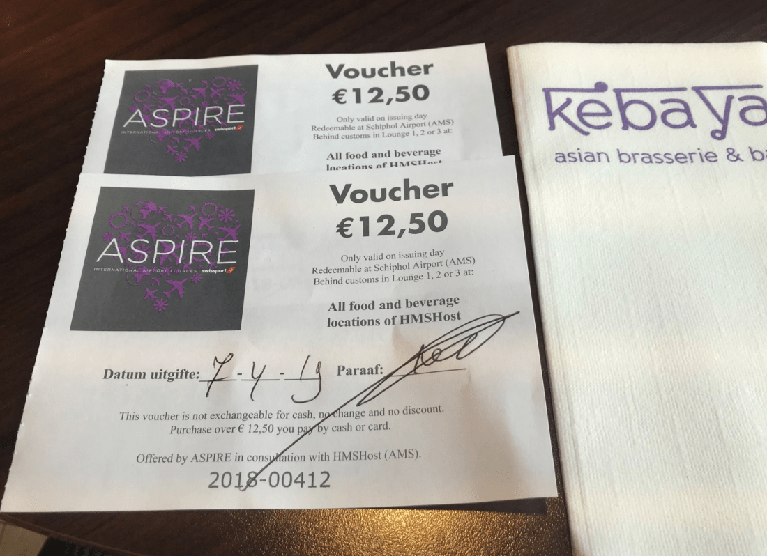 Unfortunately, due to full capacity reached, we were denied entry though we had Lounge passes. Instead, we were offered a voucher of 12.50 Euros each to eat anywhere inside the airport, or wait for people to leave. We figured that since we only had about an hour, we’d rather eat somewhere else, so we chose to take the vouchers.